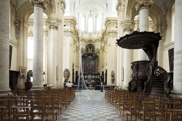 Simple y bella instalación la llevada a cabo los arquitectos Pieterjan Gijs y Arnout Van Vaerenbergh, del estudio Gijs van Vaerenbergh en la iglesia barroca de San Michiel en Lovaina Bélgica.