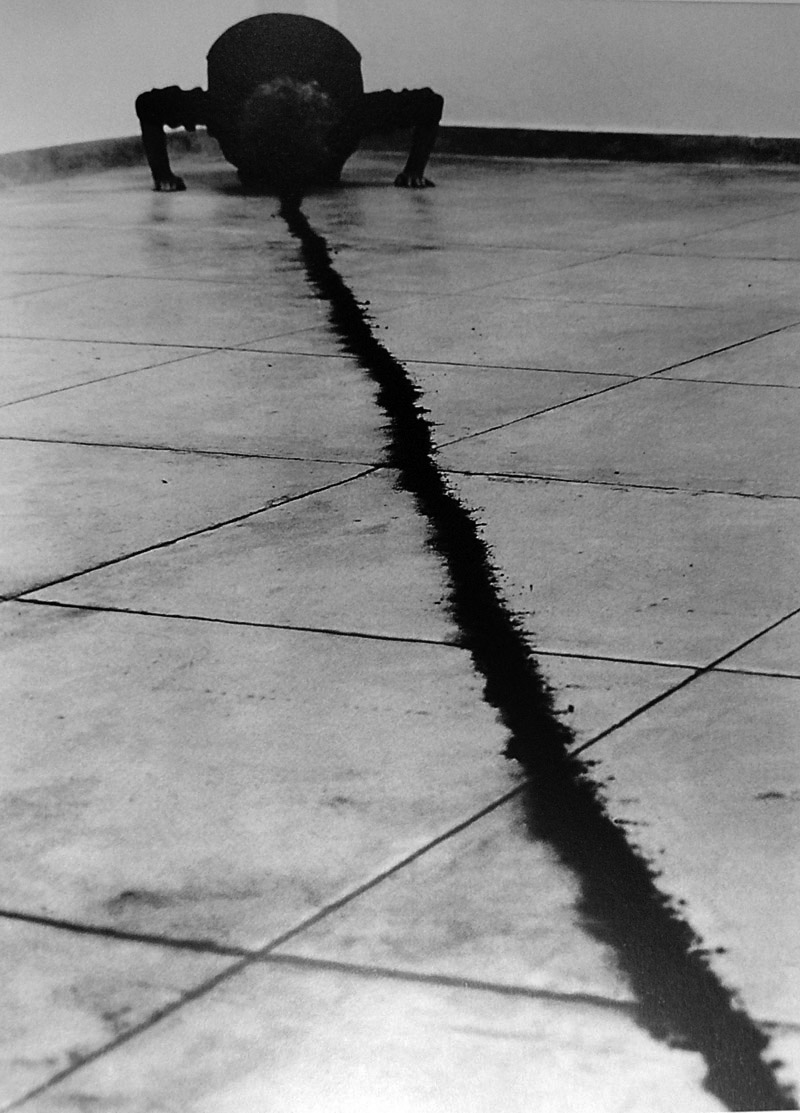 No cuenta Ana Martínez-Collado: «a partir de su cuerpo, genera espacios e imágenes. No hay ninguna experiencialidad dramática. Al contrario, de lo que se trata es de intervenir los términos, de apropiarse del lugar del arte, de la imagen pictórica. Su cuerpo se coloca dentro del lienzo y así la pintura ya «era lienzo habitado».
