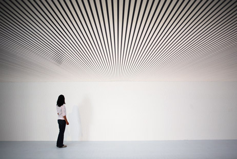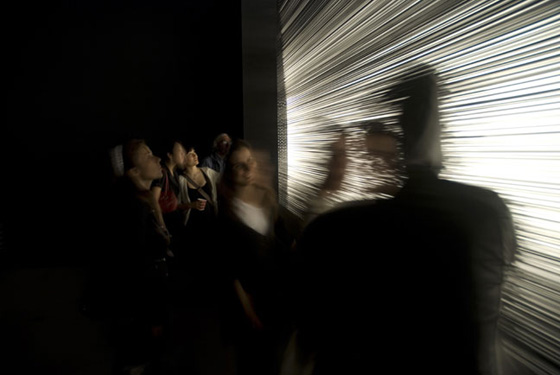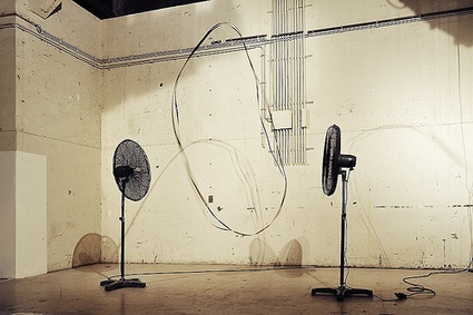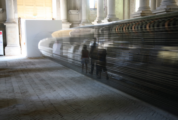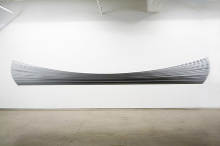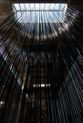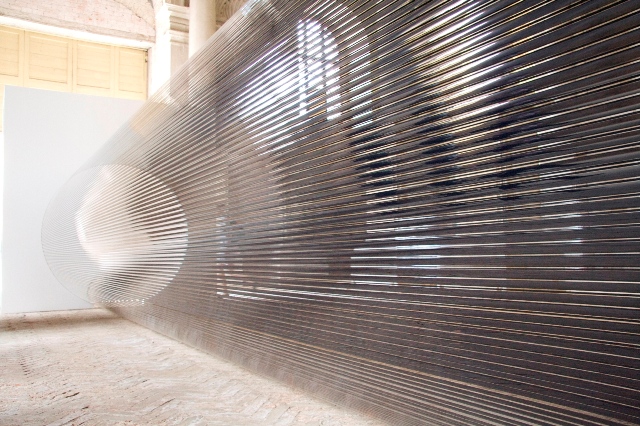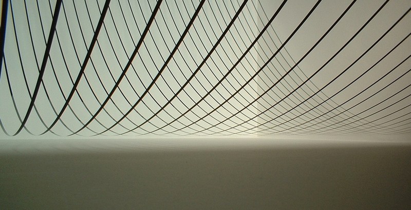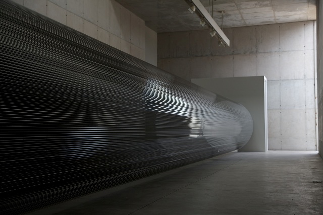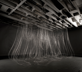 Es una cualidad fundamental de muchas de sus piezas, la manera casi mágica en la que desde lo más pequeño alcanza una monumentalidad insospechada. Aunque otras veces se queda en los más leve, como puede ser conseguir que nos quedemos enganchados con una cinta que flota aleatoriamente en el aire, movida por ventiladores.