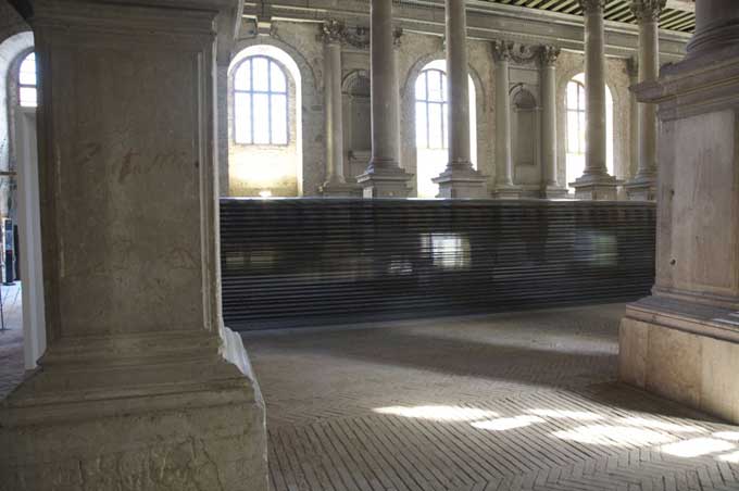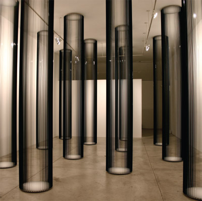 Zilvinas Kempinas usa estas cintas de vídeo para crear instalaciones escultóricas de gran envergadura, de apariencia muy frágil y efímera pero sorprendentemente resistente. Por la acumulación ordenada de muchas de ellas, consigue interesantes juegos ópticos a base de líneas abstractas de superficies negras y brillantes que reflejan la luz y se animan cuando se ponen en movimiento.