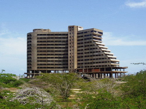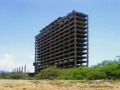 Durante su construcción, muchos de estos desarrollos turísticos colapsaron debido a las sucesivas crisis económicas de la década de los ‘90, quedando las numerosas estructuras abandonadas a su suerte a lo largo de la ciudad de Porlamar y las diversas playas de la isla.