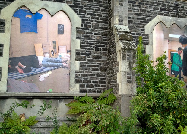 Algunos programas culturales para la renovación y revitalización se han proyectado en Christchurch, incluyendo cómo no, uno de Shigeru Ban pero del que quiero hablar no es de este, sino el que ha llevado a cabo el artista Mike Hewson y que consistió en colocar murales con imágenes de la vida cotidiana, entre las ruinas de edificios muy dañados repartidos por toda la ciudad.