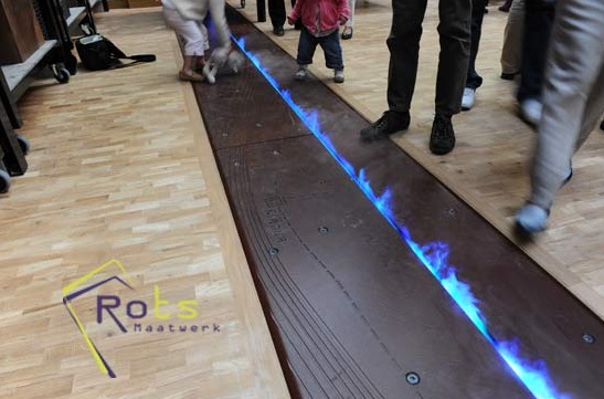 La visión impactante de la intensa línea de luz , que recorre calles y plazas, se ve potenciada por un mecanismo de humo que surge del borde de la luminaria y que le da un efecto dramático altamente sorprendente, sobre todo cuando llueve o hay niebla.