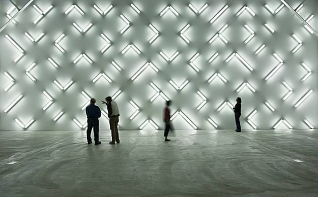 Ponerse delante de algunas de sus instalaciones de luz, sobre todo su pieza Slant/Light/Volume, debe ser como quedarse perdido en un espacio trucado, aparentemente simple en el que no hay referencias externas, lo que debe llevar a un disfrute físico y sensorial puro y directo, casi místico.