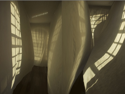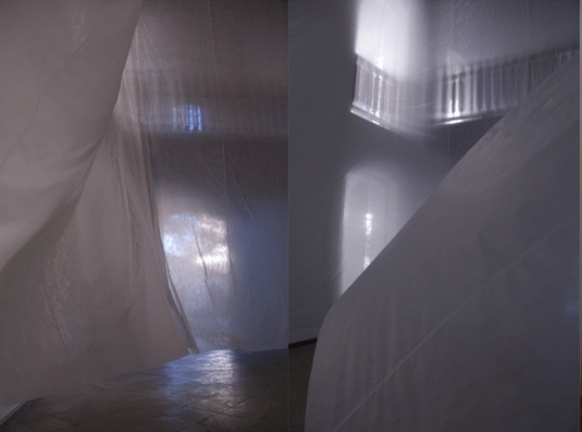 Arquitecturas efímeras en las que luces, sombras transparencias y aire, son los elementos principales que construye el espacio.