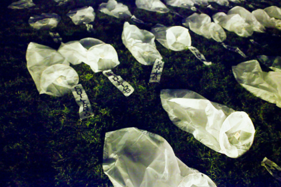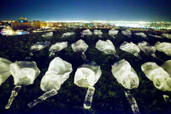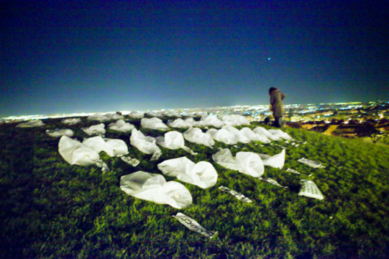 Hace unos días, Luzinterruptus me invitó a colaborar en su última instalación del año, dándoles una palabra que resumiera lo más importante que había perdido en el 2011. Su intención era lanzarlas al cielo antes de fin de año. El resultado de las aportaciones de 46 de sus amigos dio lugar a la instalación Lo que perdimos en el 2011.