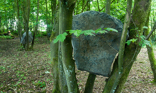 Goldsworthy ha realizado en este privilegiado entorno, varias piezas y a mí me gusta especialmente su Stone Coppice una leve modificación del entorno hecha con materiales encontrados a su alrededor, arboles y piedras.