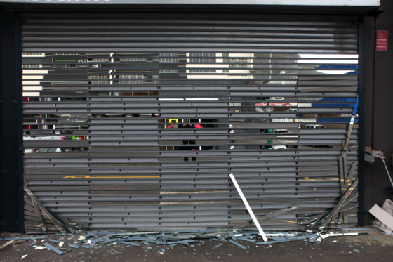 Interesantes proyecto del diseñador Rodan Kane Hart que colocó tiras de espejo el cierre de una tienda en Ciudad del Cabo para conseguir reflejar una realidad manipulada de lo que acontecía en Woodstock Rd.