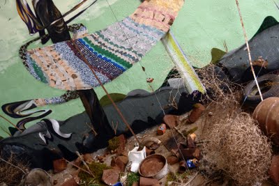 La pieza se llama Suspendido en un estado de vida y ha sido pintada por Laguna al que admiro y que ya ha sido invitado anteriormente al Ático, con la ayuda, recreando los fondos marinos, del increíble Skount.